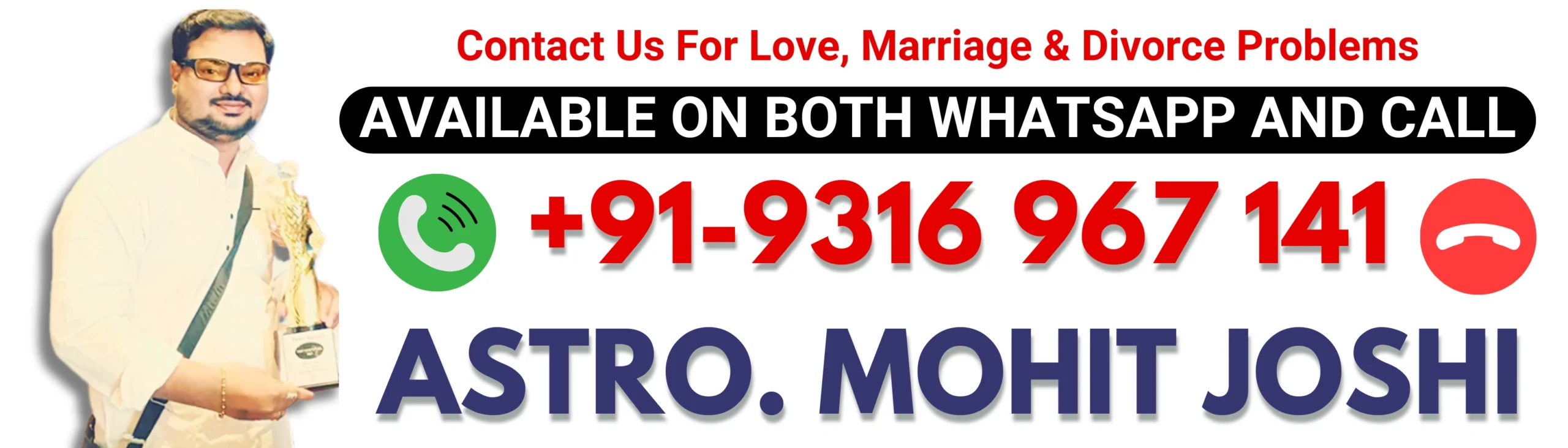 IF YOU ARE FACING ANY TYPE OF PROBLEM LIKE – LOVE PROBLEM | FAMILY PROBLEM | HUSBAND & WIFE DISPUTE | DIVORCE PROBLEM | LOST LOVE BACK | LOVE MARRIAGE PROBLEM | KUNDLI DOSH | COURT CASE | EXTRA MARITAL AFFAIRS — CONTACT ASTROLOGER MOHIT JOSHI - +91-9316 967 141